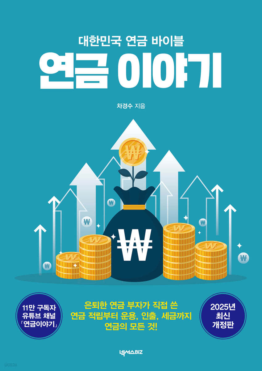 이 질문에 선뜻 '네'라고 답하기 어렵다면, 차경수 작가의 **『연금 이야기』**를 펼쳐볼 때입니다. 😃 이 책은 '대한민국 연금 바이블'이라 불릴 만큼 노후 대비와 연금 재테크에 대한 모든 것을 담고 있습니다. 연금 부자로 은퇴한 저자가 자신의 경험과 지식을 바탕으로 연금 적립부터 운용, 인출, 세금까지 알기 쉽게 설명해 줍니다. 그리고 11만 구독자를 보유한 유튜브 채널 '연금이야기'를 운영해 온 저자는 그 노하우를 이 한 권에 아낌없이 담았습니다. 최신 세법과 투자 환경을 반영한 2025년 개정판이라 더욱 믿음직합니다.📚